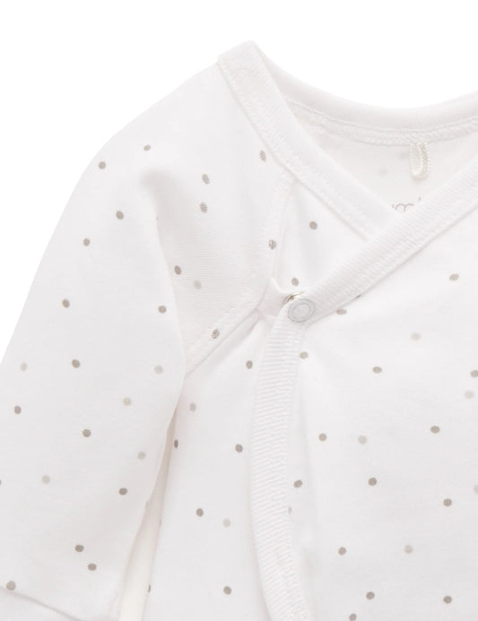 Purebaby - Pemi Crossover Long Sleeve Growsuit - Pale Grey Spot