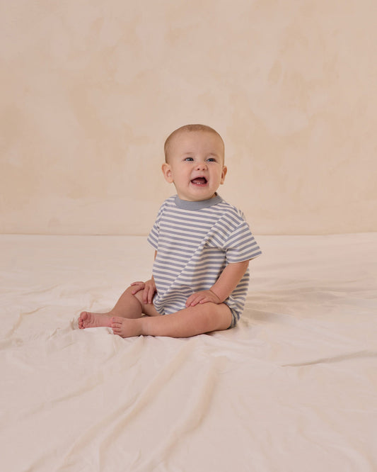Quincy Mae - Relaxed Bubble Romper - Blue Stripe