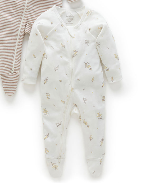 Purebaby - 2 Pack Zip Growsuit - Vanilla Wattle Bee