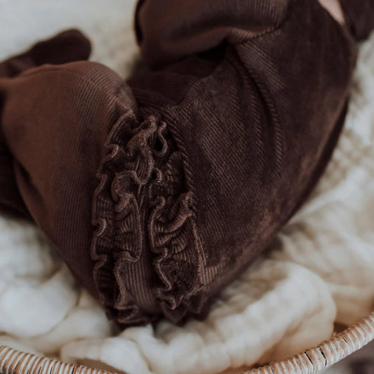 3 Little Crowns - My First Outfit - Corduroy Flutterbum & Top Knot - Chocolate - Newborn